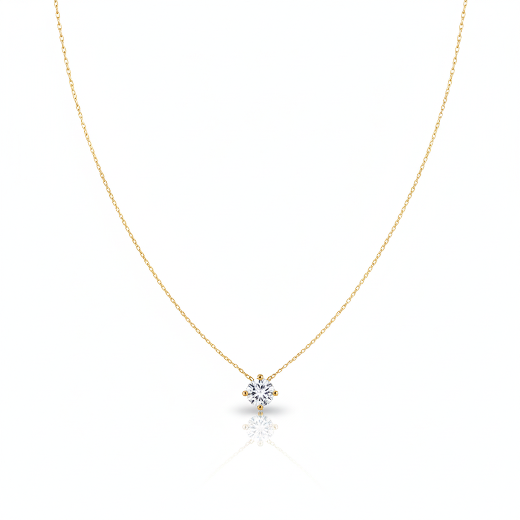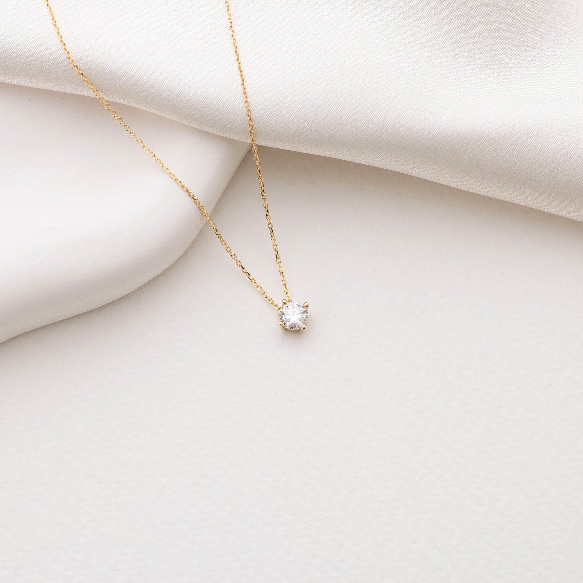 Embrace the ultimate glow with our Certified Lab-Grown Moissanite Necklace. This exquisite piece features a premium moissanite stone—offering more fire and brilliance than a traditional diamond—expertly set in a solid 14K Gold mounting and chain. Each necklace comes with an official laboratory certificate, guaranteeing a sustainable and conflict-free luxury experience that lasts a lifetime.