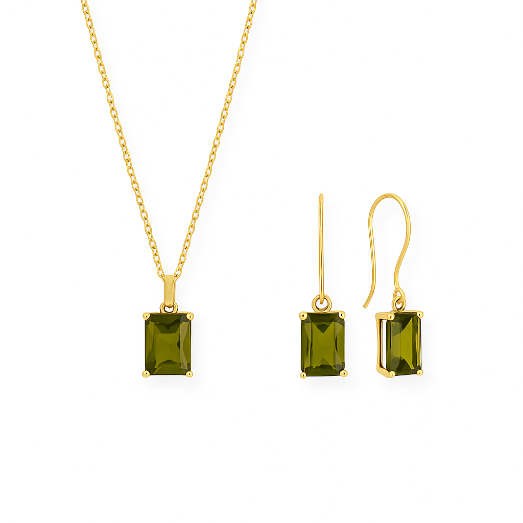 Dainty Peridot Necklace & Earrings Set in 925 Sterling Silver