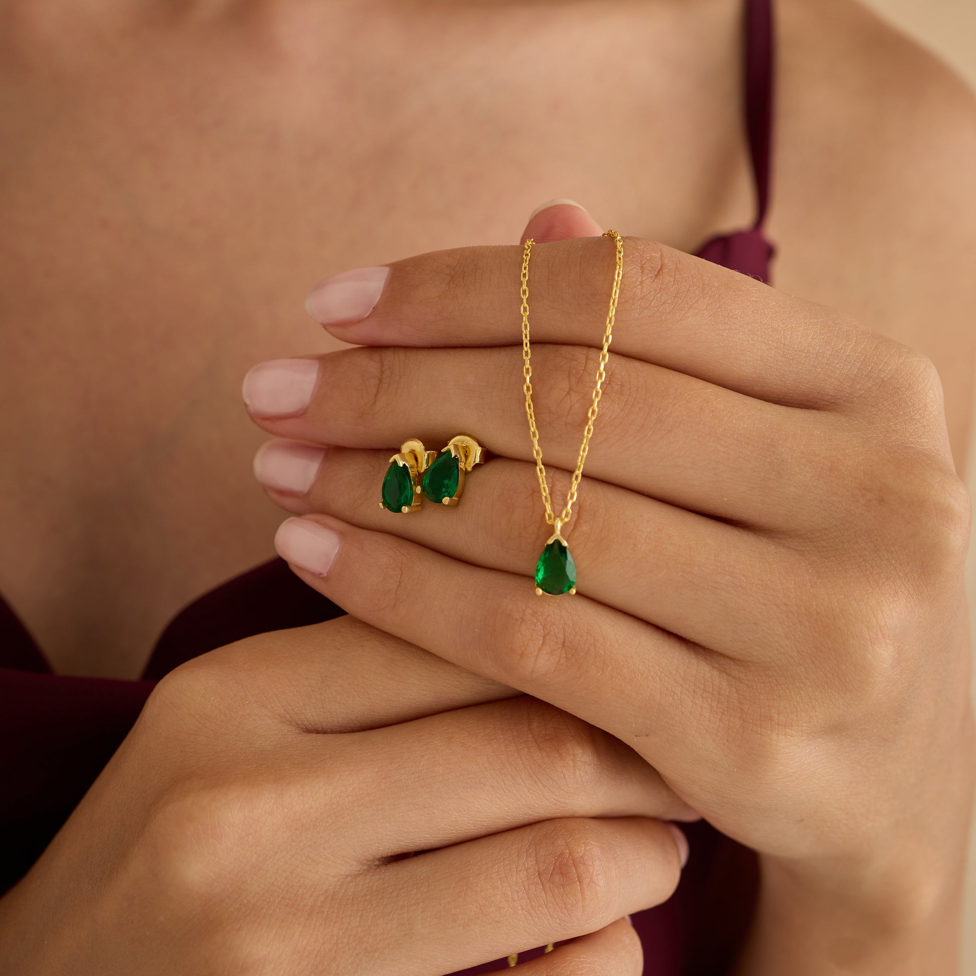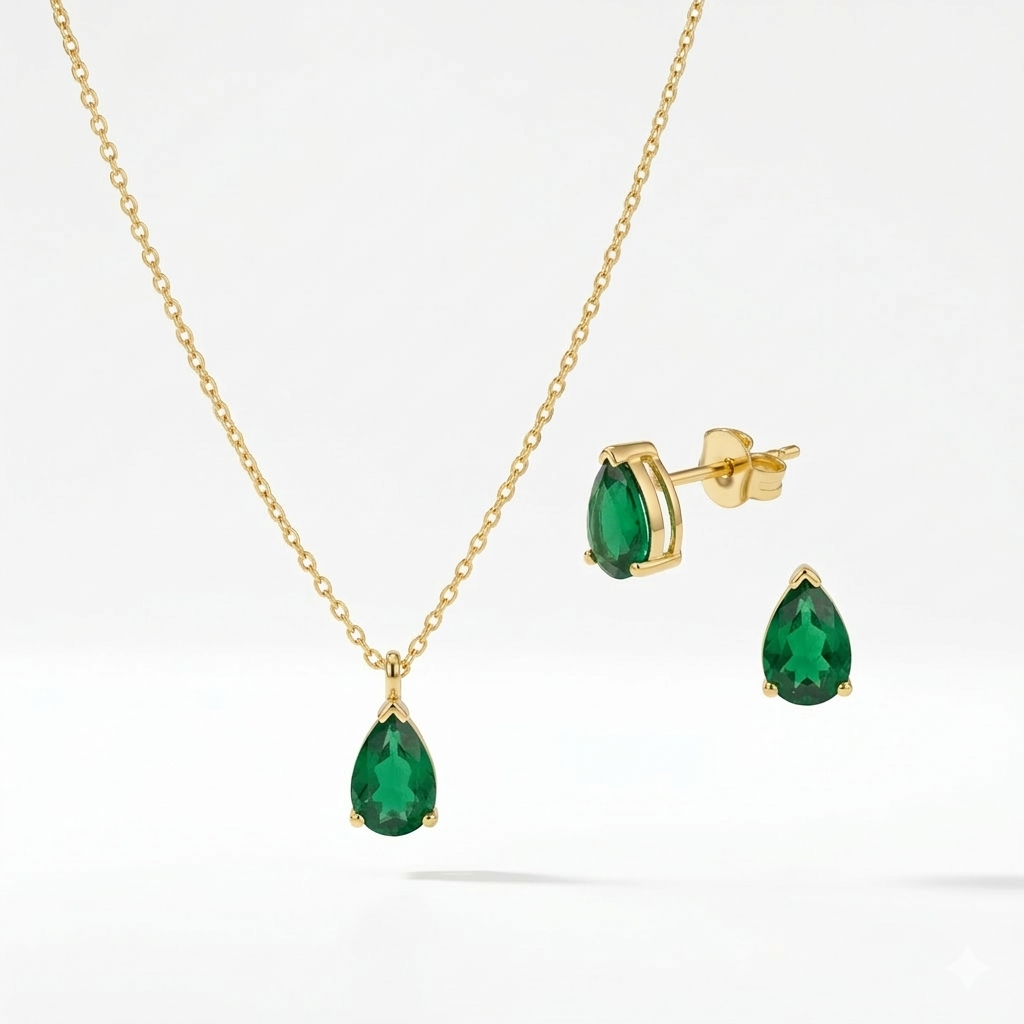 Elevate your jewelry collection with this sophisticated teardrop set, including a matching necklace and stud earrings. Handcrafted from premium 925 Sterling Silver, each piece features a high-grade emerald-green zirconia for a radiant, luxurious look. Available in 18K Gold, Rose Gold, or Polished Silver, the necklace includes a customizable chain from 14 to 24 inches for a perfect fit.
