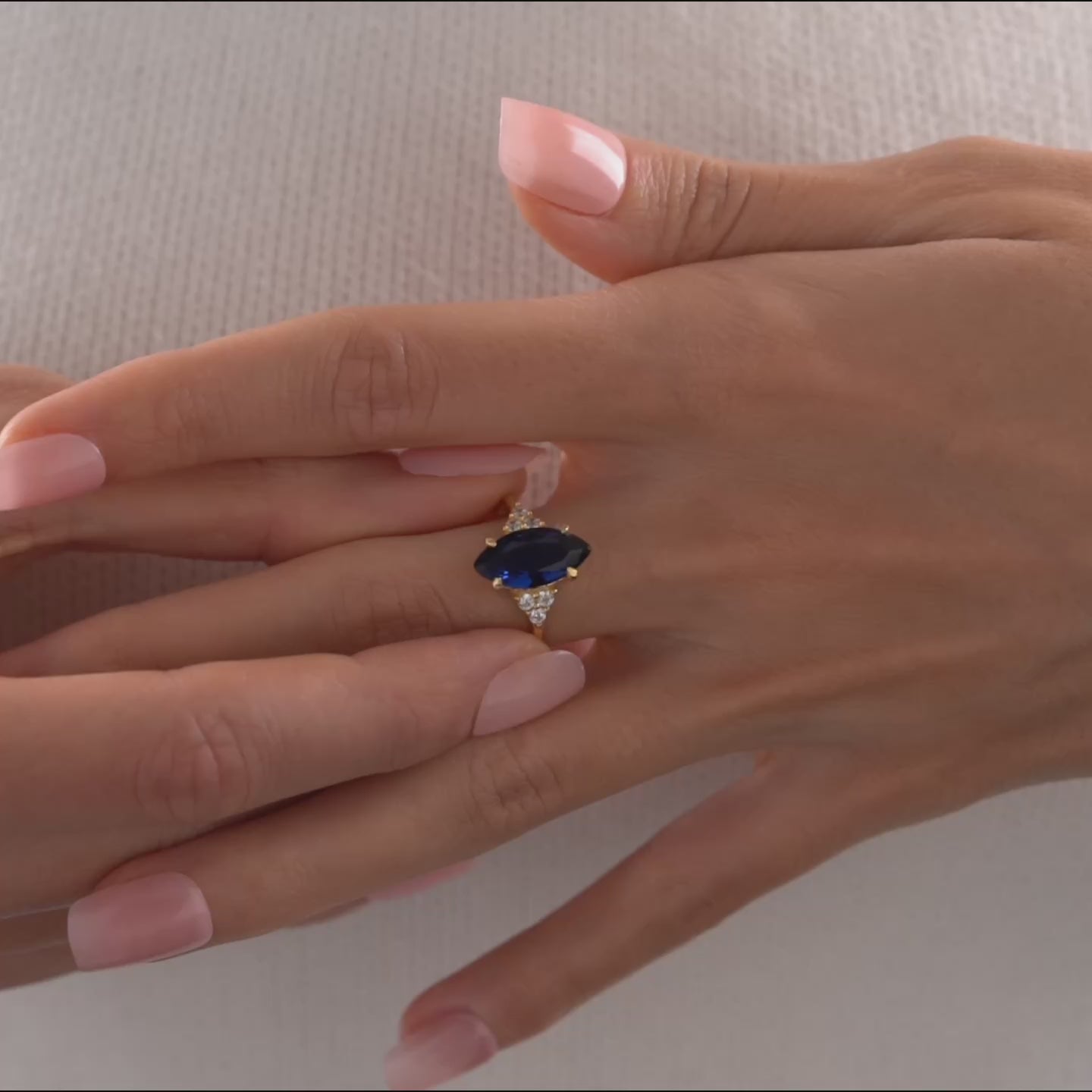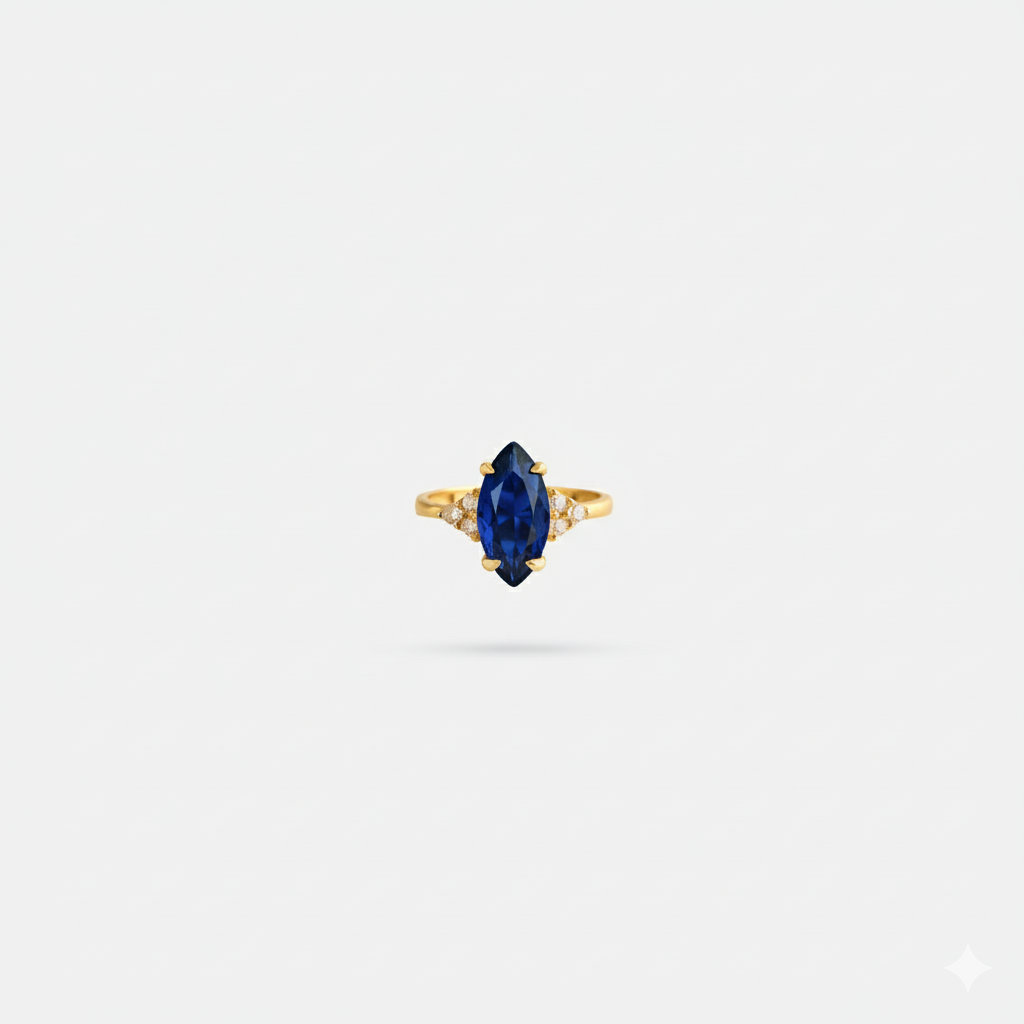 This ring features a prominent marquise-cut zircon inspired by the deep hues of blue sapphire. The center stone is framed by a precise pave setting of diamond-look zircon stones, extending along the band for a clean, brilliant finish. Available in three high-quality finishes: Gold Filled, Rose Gold Filled, and Polished Silver, each designed for durability and a premium aesthetic.