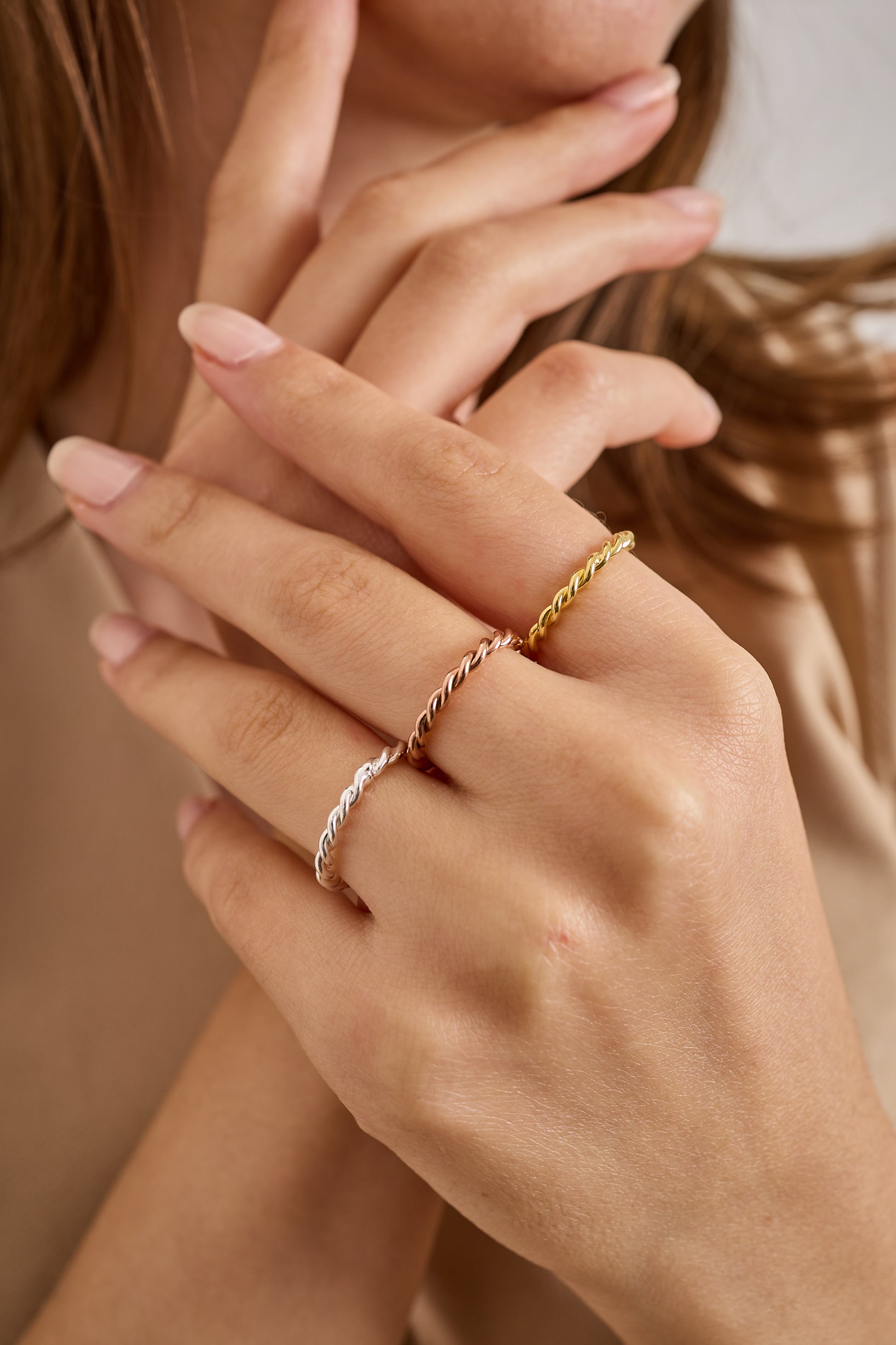 Meticulously handcrafted from premium 925 Sterling Silver, these elegant twisted rope rings offer the perfect balance of minimalist style and artisanal craftsmanship. You can choose to purchase them as a single statement piece or as a coordinated set of three to create a stunning stacked look. Available in three high-end finishes Gold Plated, Romantic Rose Gold, and Bright Polished Silver each ring is a testament to timeless design and durability.